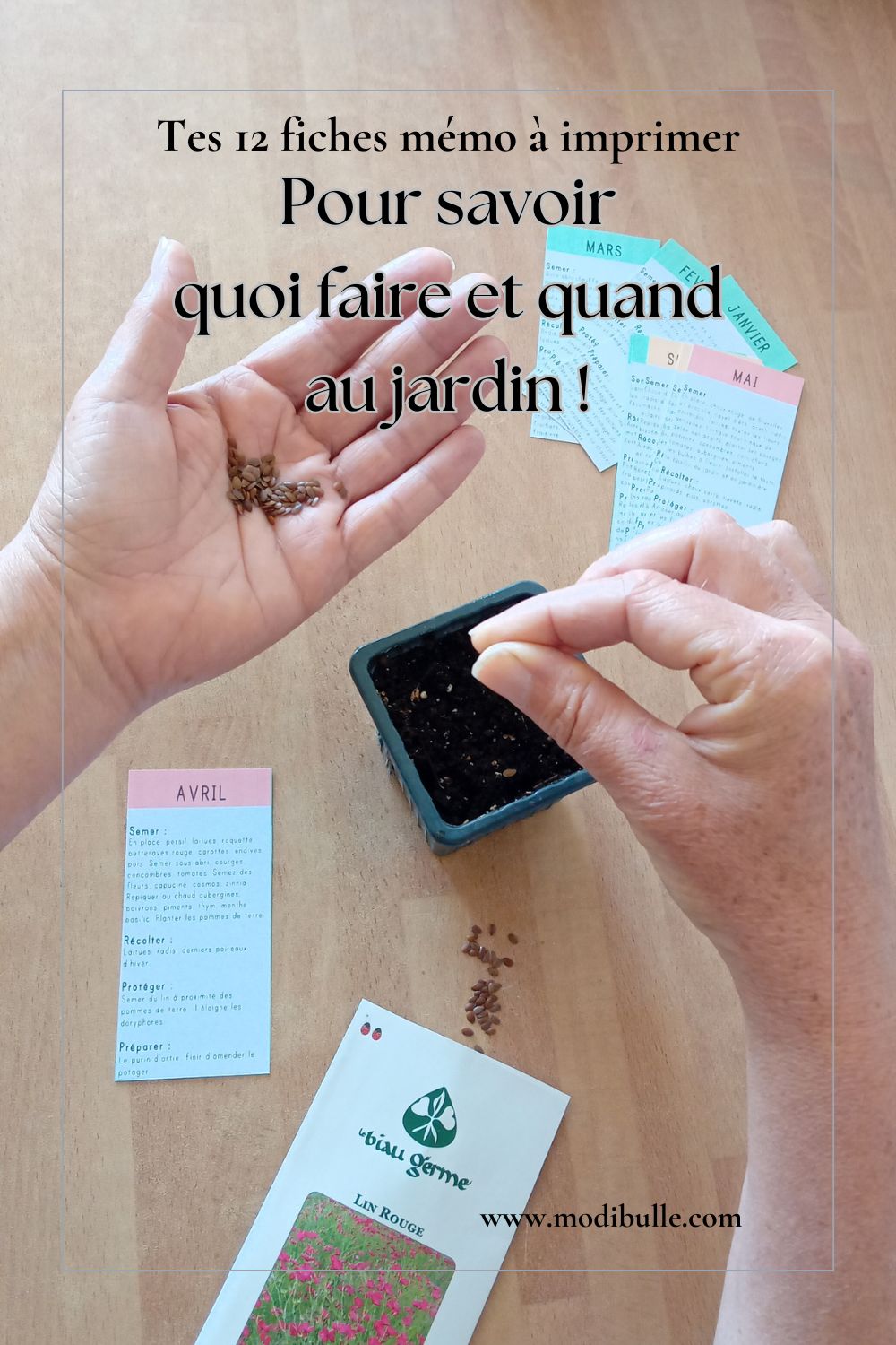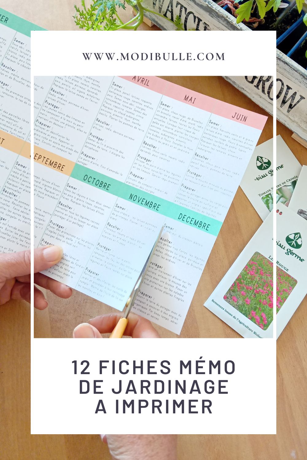 Avec ces 12 fiches mémo de jardin – une fiche pour un mois – tu auras de bonnes bases pour ne pas t’éparpiller et savoir quoi semer, quoi récolter, ce qu’il faut protéger ou préparer pour ne pas paniquer, avancer sereinement et profiter pleinement du bonheur que l’on peut avoir à jardiner !
