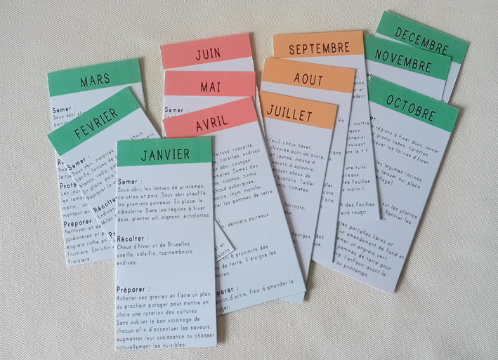 Il fallait trouver un format facile à utiliser et qui donne une vision claire du travail à accomplir, en un coup d’oeil. Ces douze petites fiches ont une taille idéale pour toutes les mains !